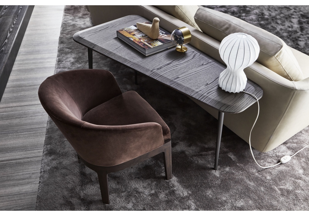 Chelsea designed by Rodolfo Dordoni for Molteni&C is a small armchair made with structure in solid stained wood and upholstery in fabric or leather. Available in different upholstery.