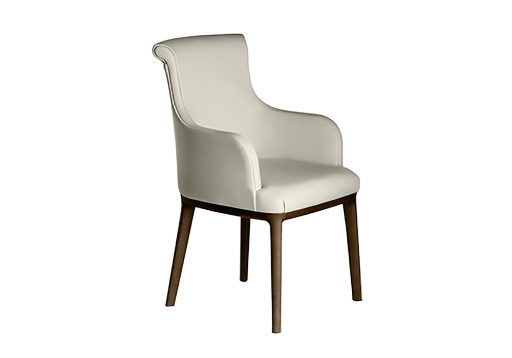 Diva designed by Roberto Lazzeroni for Poltrona Frau is a small armchair with shell in moulded rigid polyurethane foam, armrest in rigid moulded polyurethane and seat, base and legs made of solid ash. The upholstery is available in Pelle Frau leather or fabric.