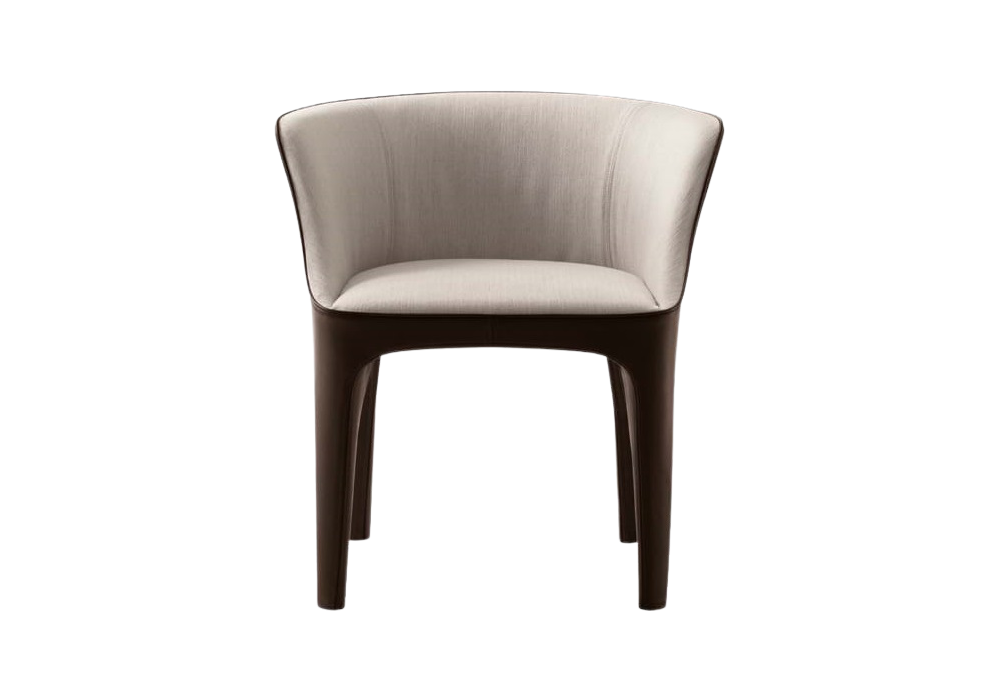 Diana designed by Carlo Colombo for Giorgetti is an armchair with a steel section structure and polyurethane foam padding. The upholstery is two-tone, with the outside and legs in leather, and the inside in fabric or leather. The tips are of the legs are in black pvc.