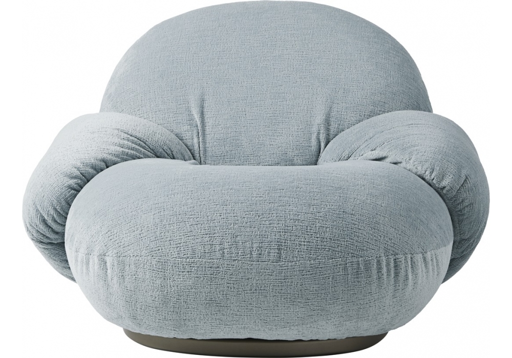 Pacha firmata da Pierre Paulin per Gubi è una poltrona lounge completamente imbottita e rivestita in tessuto o pelle con base in legno. È disponibile con e senza braccioli e anche in versione girevole.