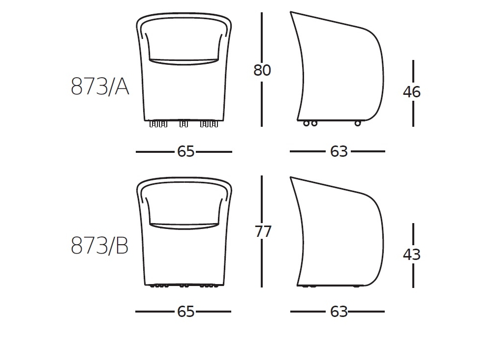 | Dimensions | 873/A_ 65 x 63 x H 80 cm; 873/B_ 65 x 63 x H 77 cm. |