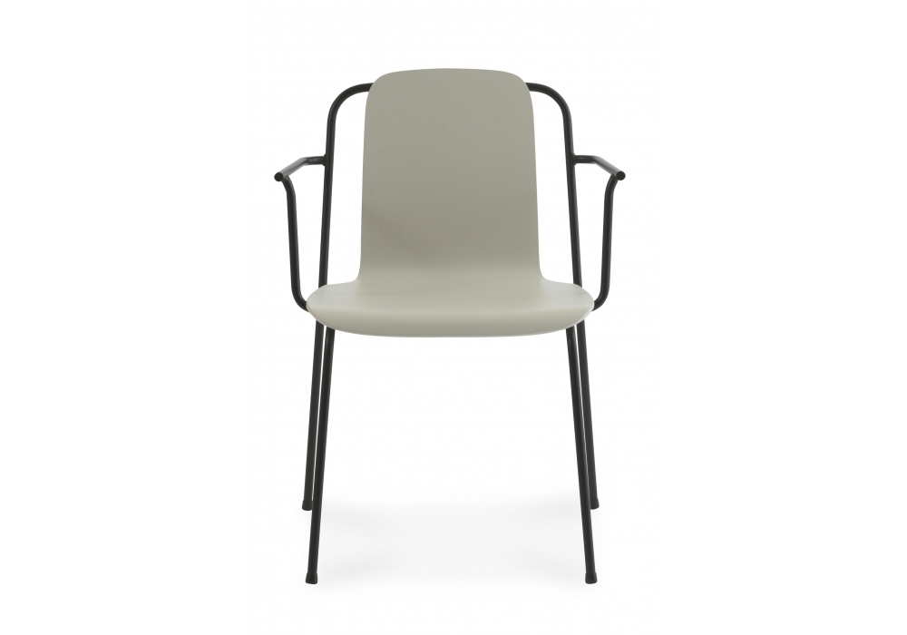 Studio, designed by Simon Legald for Normann Copenhagen is an armchair, with seat and back modeled from a single body in oak, and structure in tubular steel. Studio is available in different lacquered wood finishes.