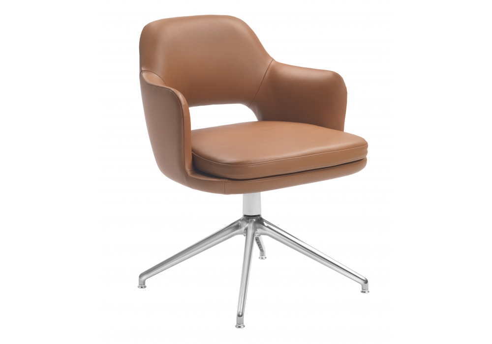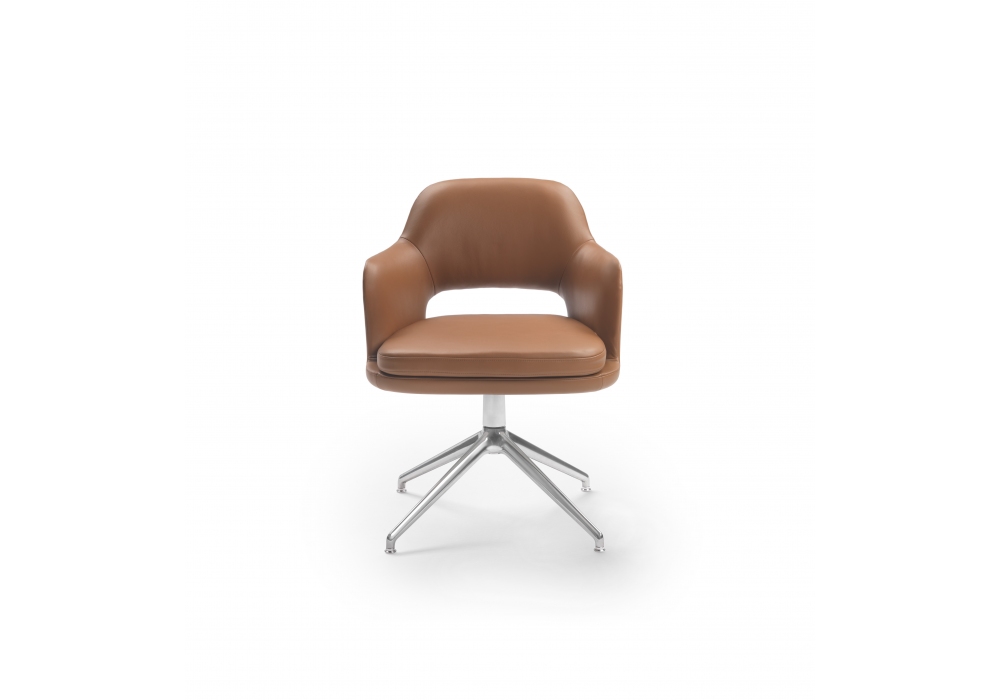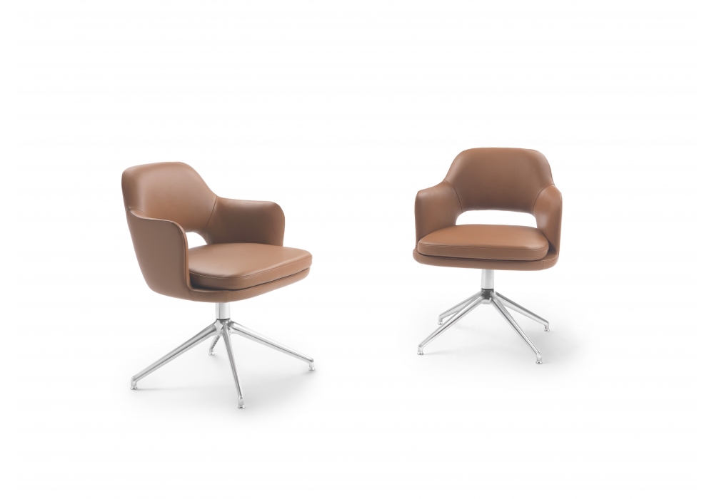 Eliseo designed by Antonio Citterio for Flexform is a small armchair with aluminum swivel base with return mechanism, double polyurethane body and fabric or leather upholstery.