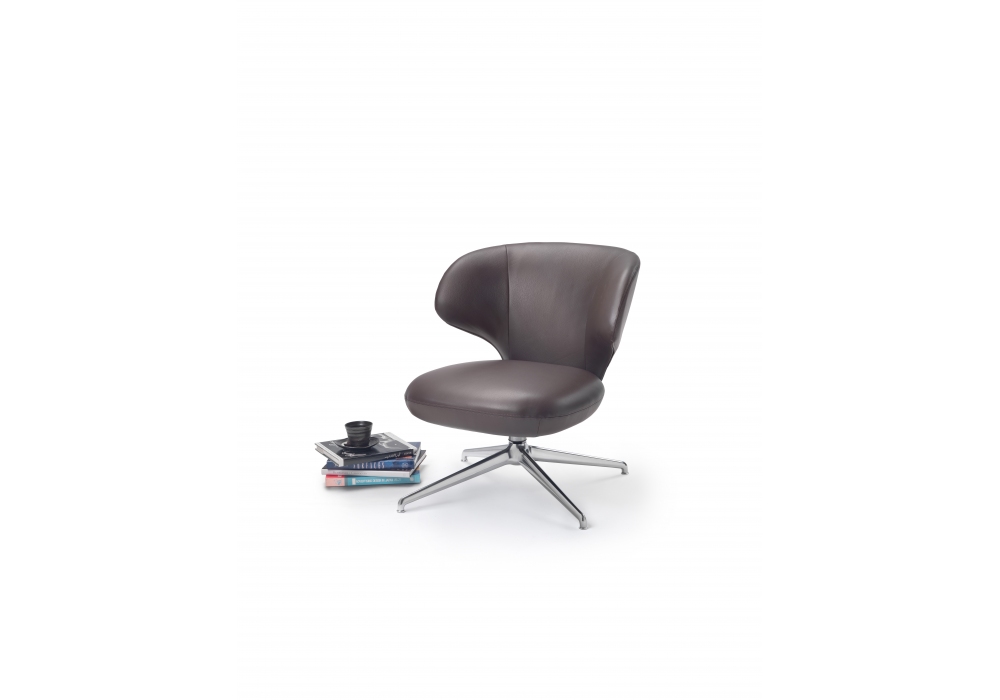 Susanne designed by Roberto Lazzeroni for Flexform is a small armchair with metal base available in 4 or 5 stars swivel versions, and fabric or leather upholstered back and seat.