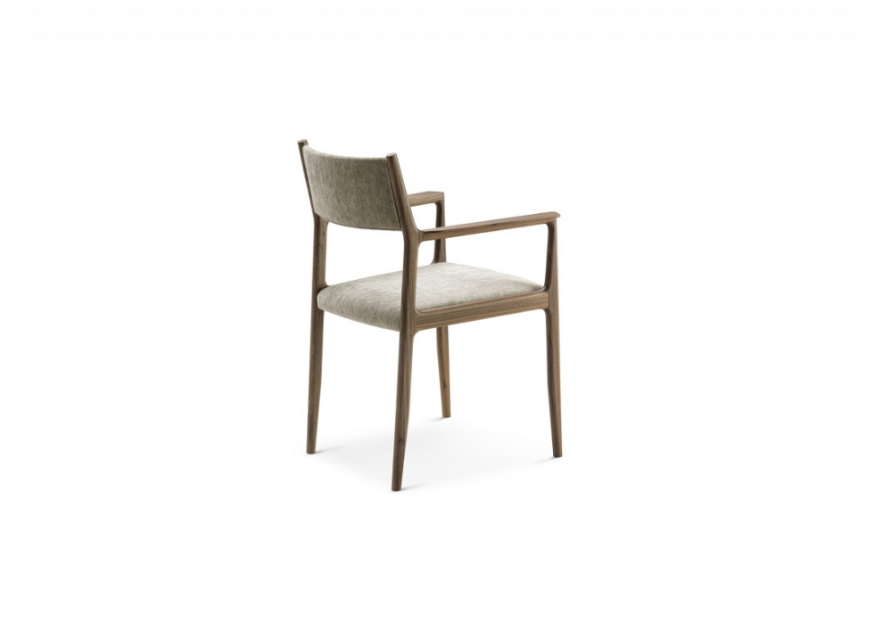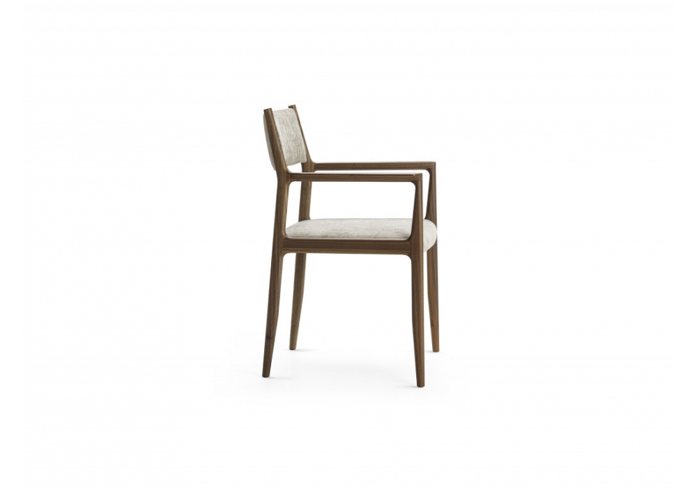 Lisa designed by Draw Studio for Ceccotti Collezioni is a small armchair with walnut or ash structure and fabric or leather upholstered back and seat.