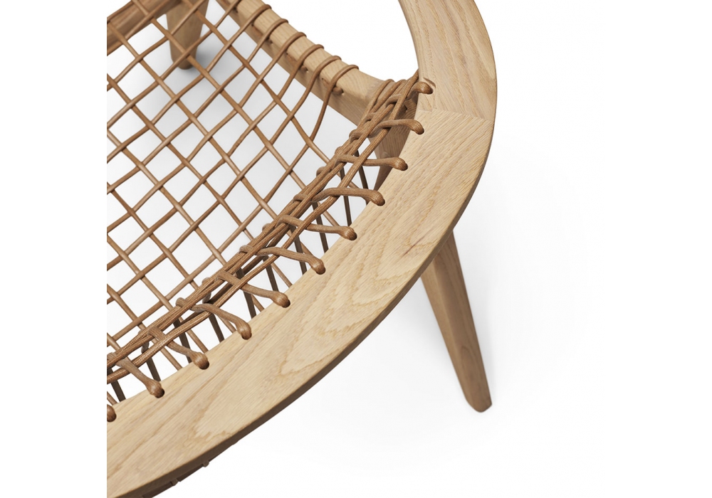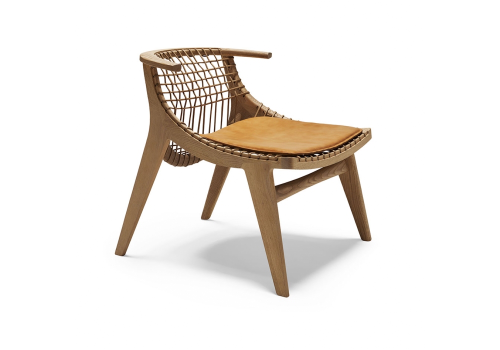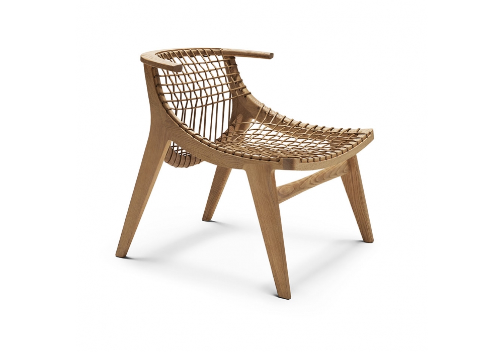 Klismos designed by Antonio Citterio for Knoll is a small armchair with a natural or black oak structure. The seats and backrests are in natural or black cotton rope to match the structure. The cushion is optional, in natural leather or black leather.