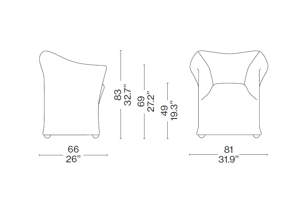 684 designed by Mario Bellini for Cassina is an armchair made with a tubular steel frame equipped with elastic straps, polyurethane foam and polyester wadding padding and fabric or leather upholstery.