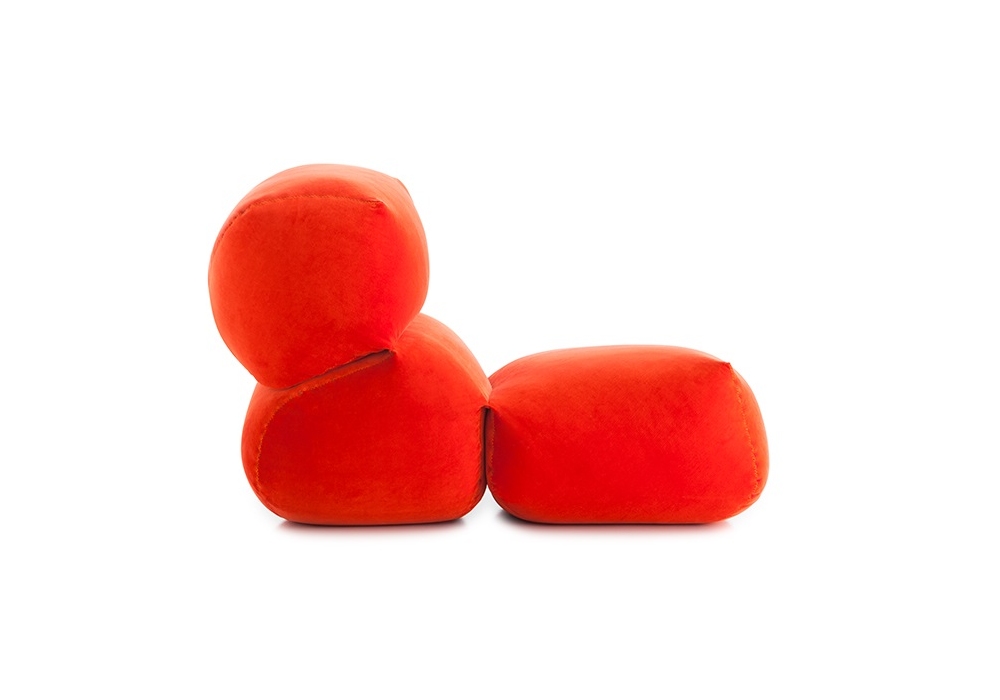 Grapy Velvet designed by Kensaku Oshiro for Gan is a small armchair with 100% velvet upholstery and padding made from a mix of polystyrene and chopped foam. Available in two finishes.