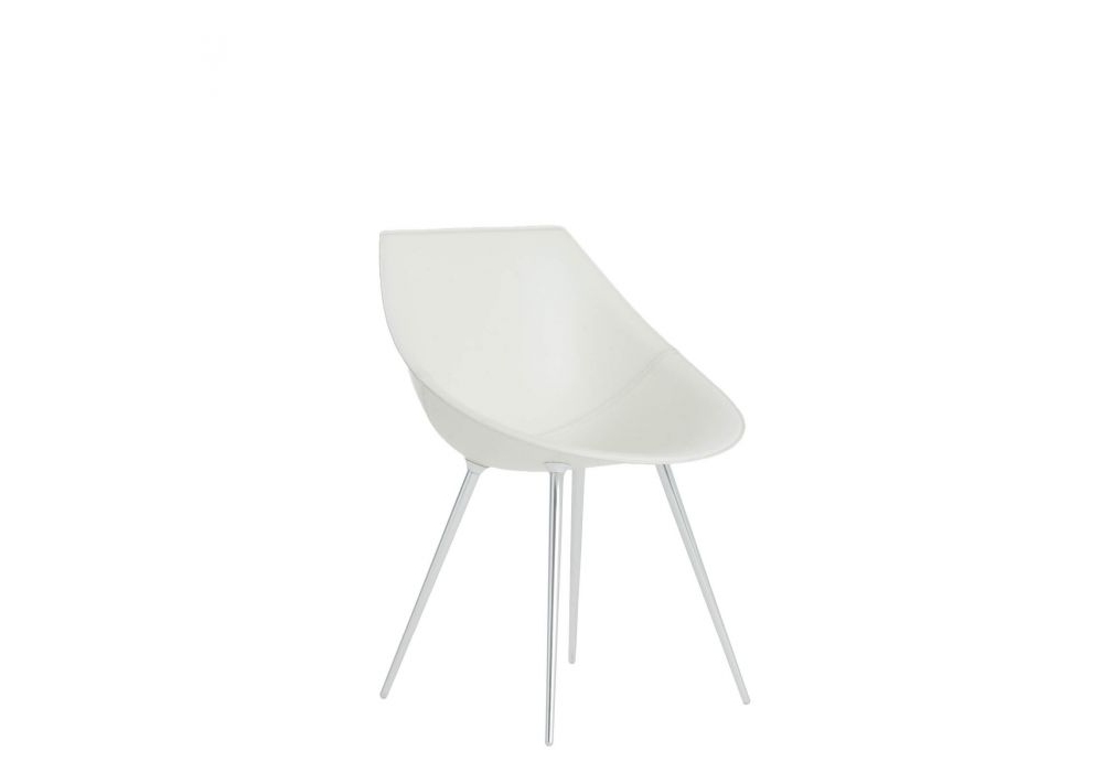 Lagò Cuoio designed by Philippe Starck for Driade is an armchair with legs in anodized aluminum and rigid polyurethane shell completely covered in leather in dove gray, brown, white or black colors. Internal use only.