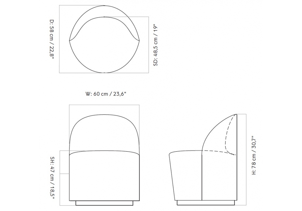 Tearoom Side designed by Nick Ross for Audo Copenhagen is a swivel armchair, padded and covered in fabric, base in black MDF. Available in different finishes and sizes.