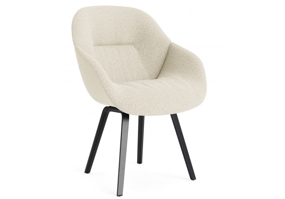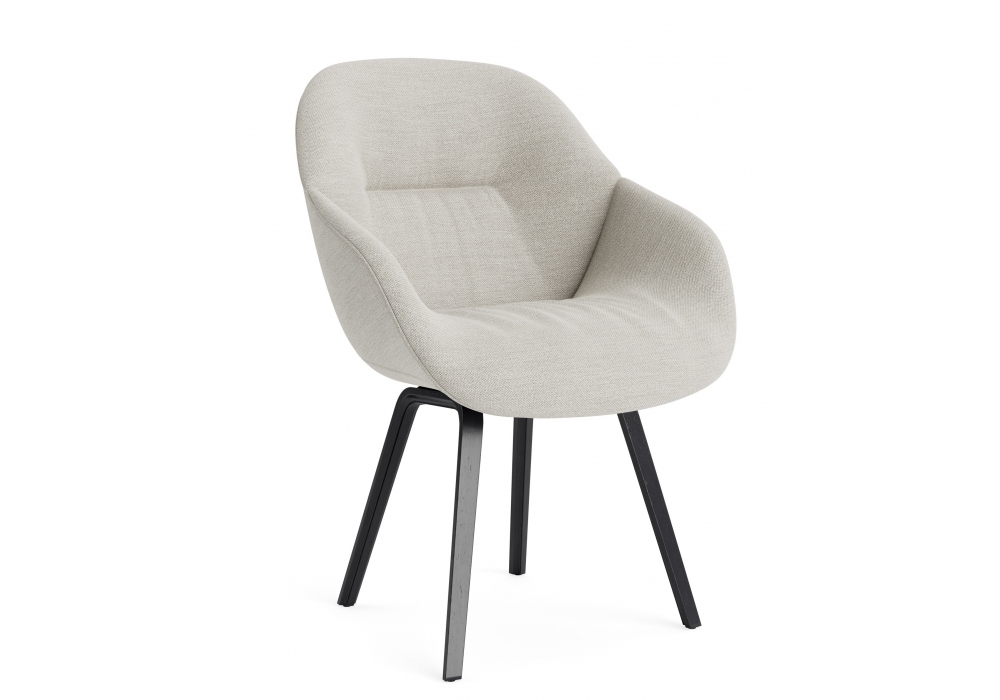 About a Chair AAC 123 Soft designed by Hee Welling & Hay for Hay is an armchair with injection molded polypropylene shell with armrest, upholstery and quilted front. Base in oak or walnut wood. Available in different upholstery.