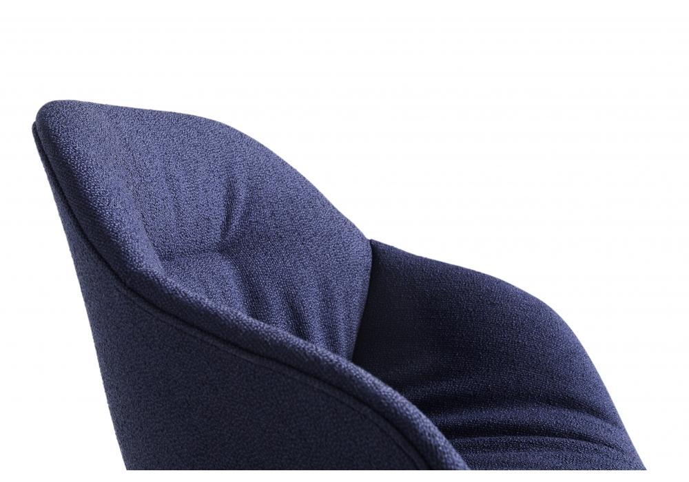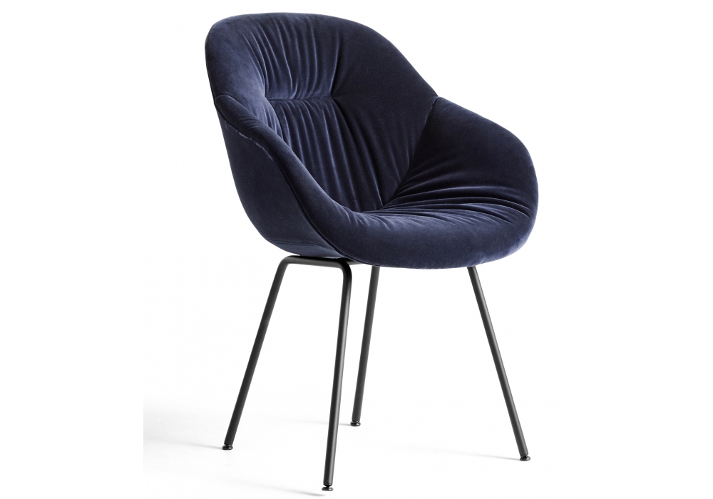 About a Chair AAC 127 Soft designed by Hee Welling & Hay for Hay is a small armchair with injection molded polypropylene shell with armrest, upholstery and quilted front in leather or fabric. 4-leg base in curved steel tube. Available in different finishes..