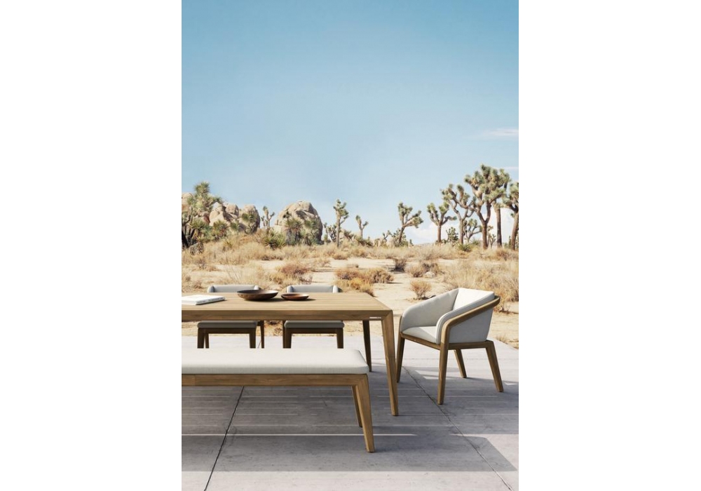 Sunrise designed by Matthew Townsend for Manutti is an outdoor small armchair with structure in teak and upholstery in fabric. Available in different finishes.