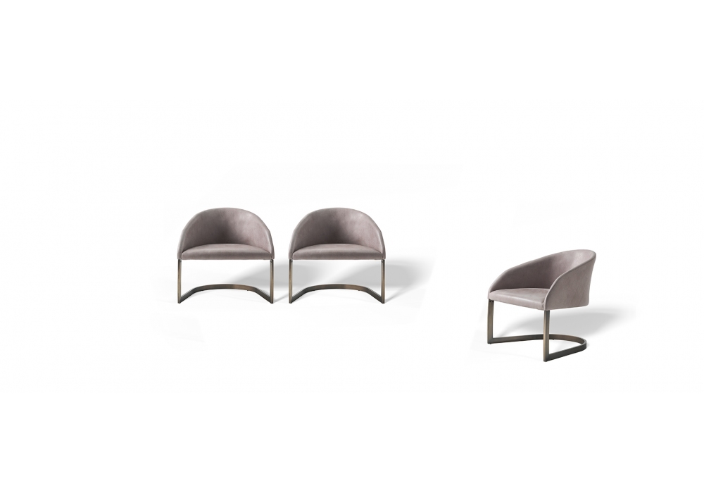 Sign Lounge designed by Giuliano Cappelletti for Emmemobili is an armchair with structural metal frame and foam padding covered in leather or velvet. The slightly bending base can be made of steel or brass.