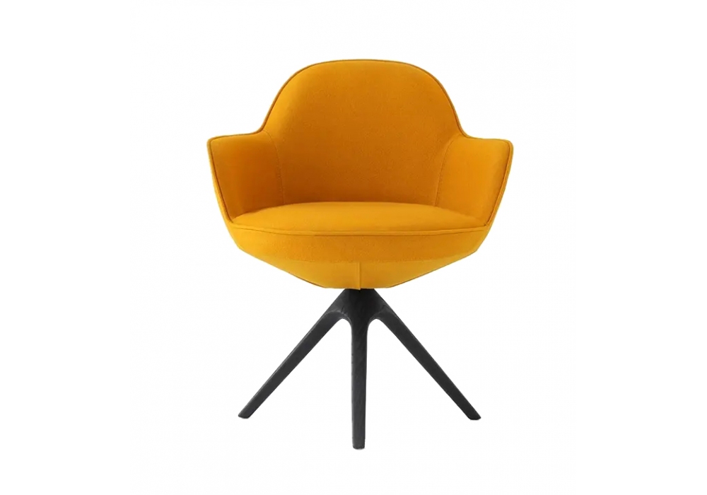 Romby designed by GamFratesi for Porro is a small armchair made with a solid ash base and padded seat upholstered in fabric or leather.