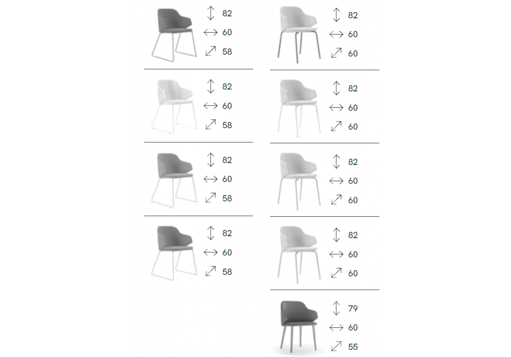 | Dimensions | 60 x 58 x H 82 cm; 60 x 60 x H 82 cm; 60 x 55 x H 79 cm. |