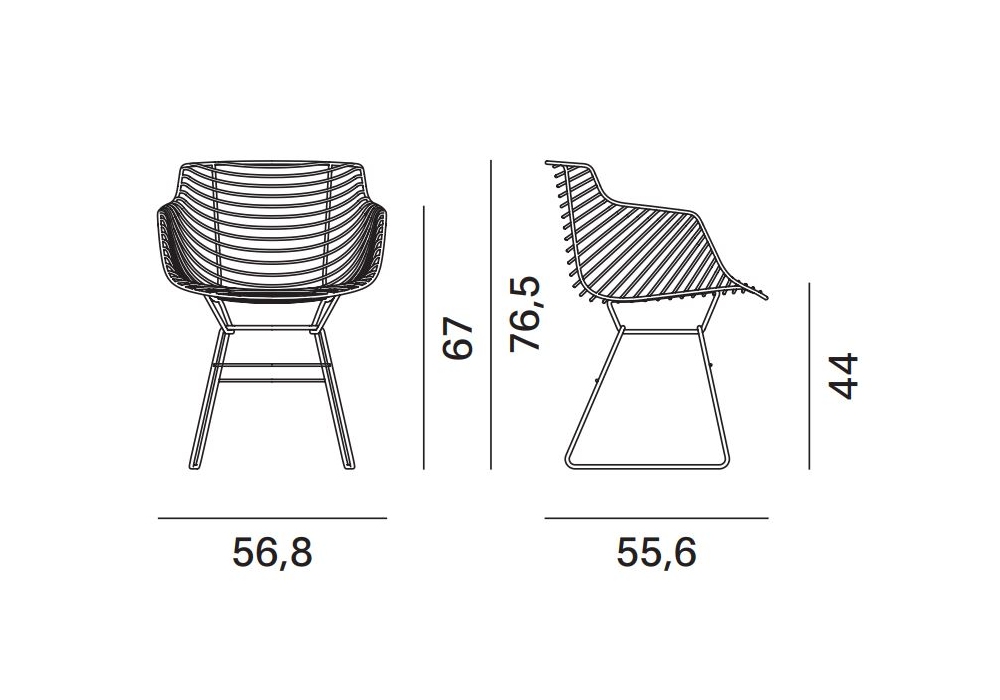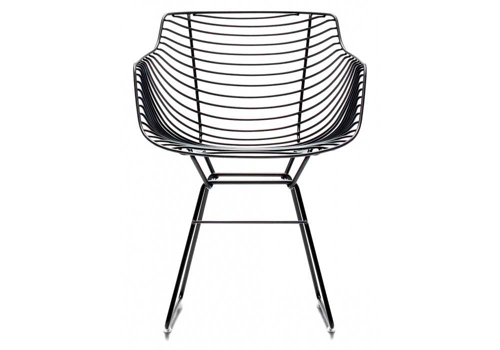 Flow Filo designed by Jean Marie Massaud for MDF Italia is an armchair with supporting structure in steel wire, with sled base, available in various finishes. The matt bronze or black nickel painted version is also suitable for outdoor use. Upon request, it is possible to add pads for the seat and backrest, in various colours.