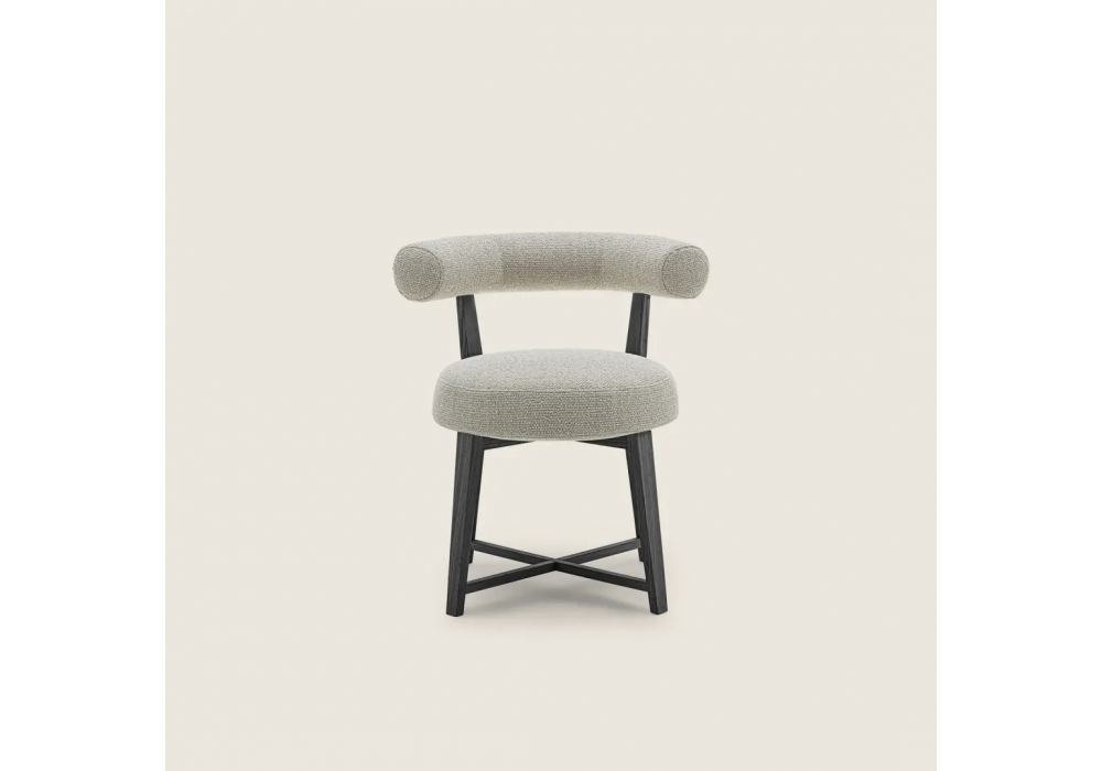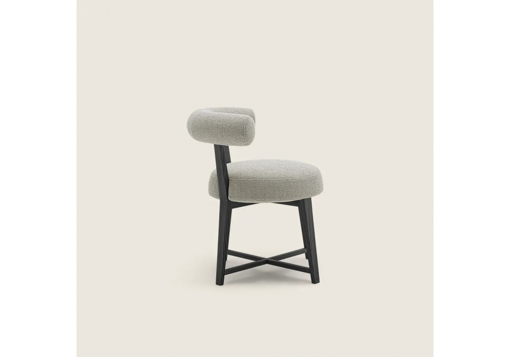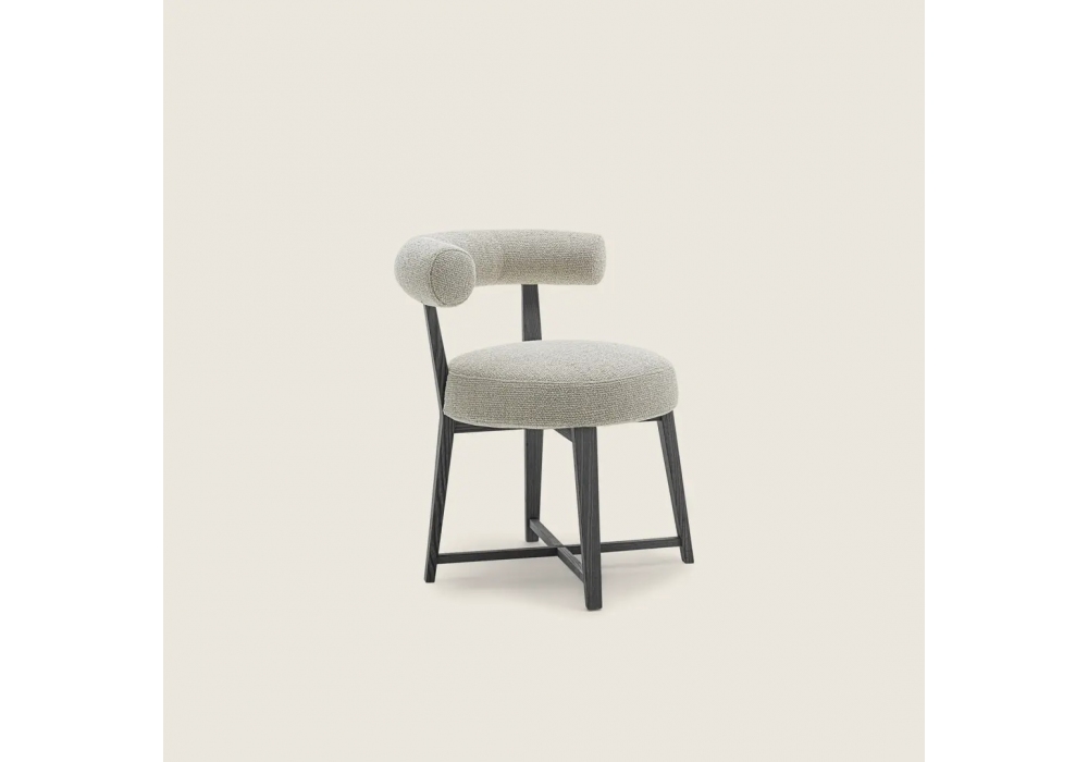 Justine designed by Antonio Citterio for Flexform is a dining chair with wooden structure available in different finishes. Seat in wood with variable density polyurethane foam padding with top layer in sterilized goose-down, encased in protective laminated fabric. Backrest in metal with polyurethane foam padding, encased in protective laminated fabric. Rests on tips made of thermoplastic material. Upholstery available in fabric or leather.