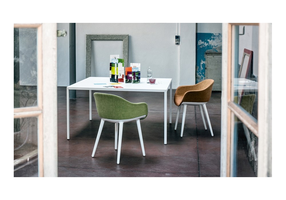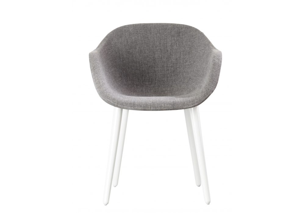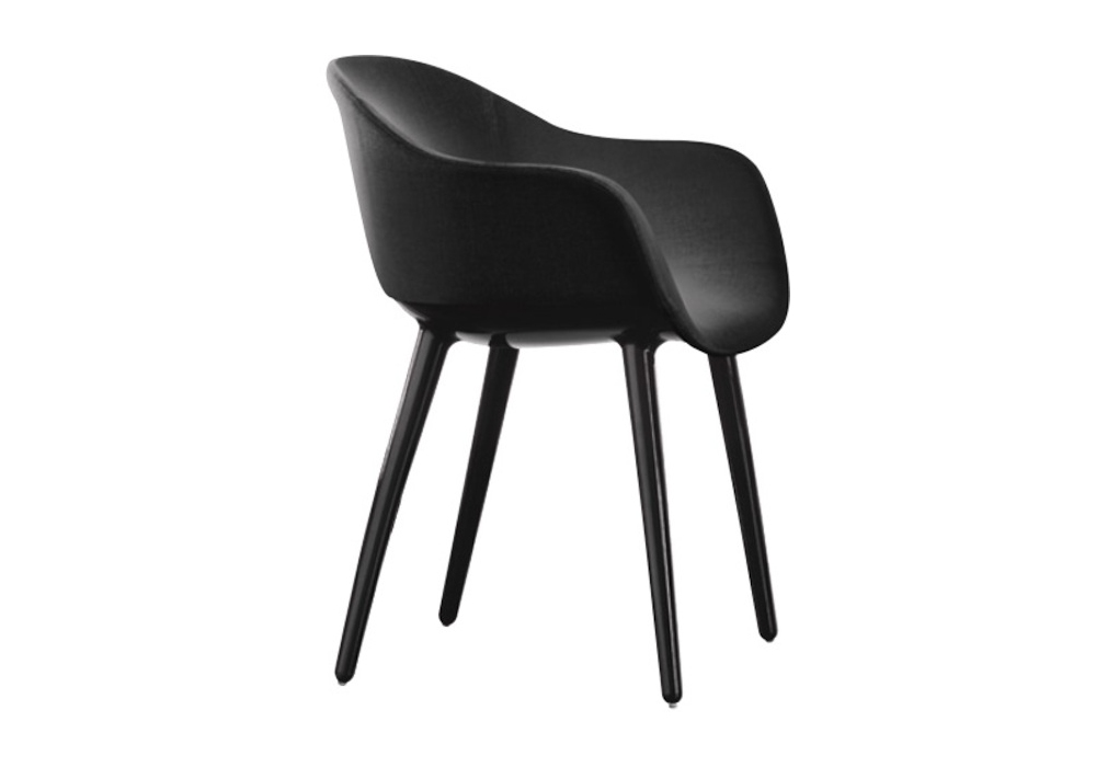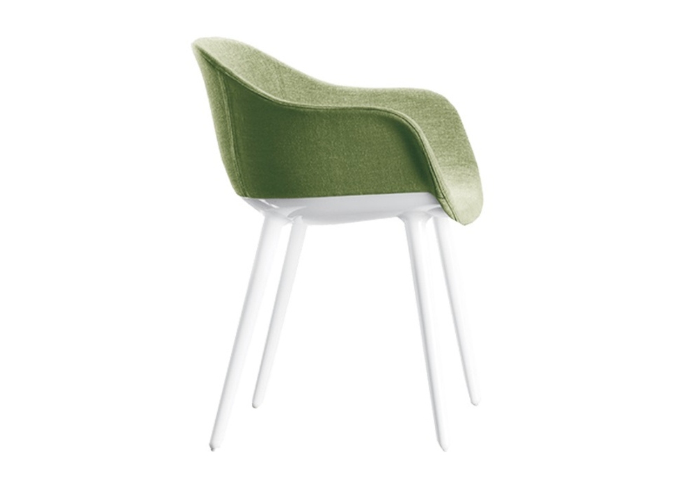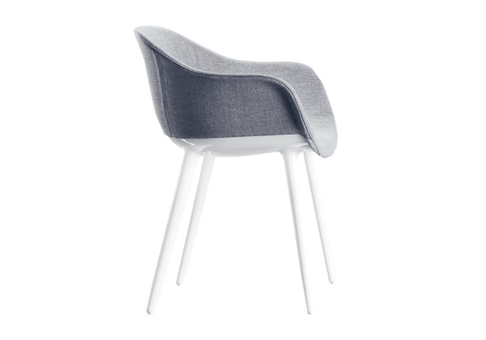 Cyborg Lady designed by Marcel Wanders for Magis is a small armchair made of polycarbonate, seat and backrest in fire-retardant polyurethane foam, covered in fabric or leather.