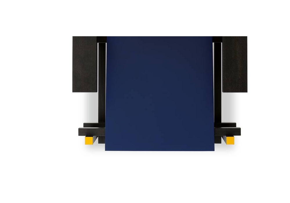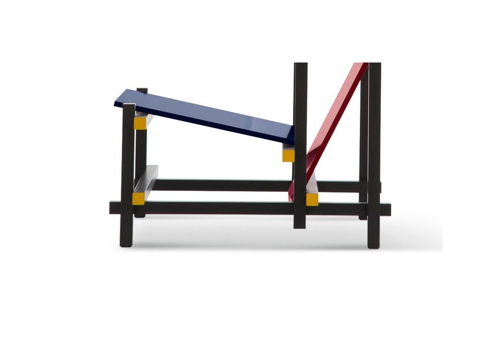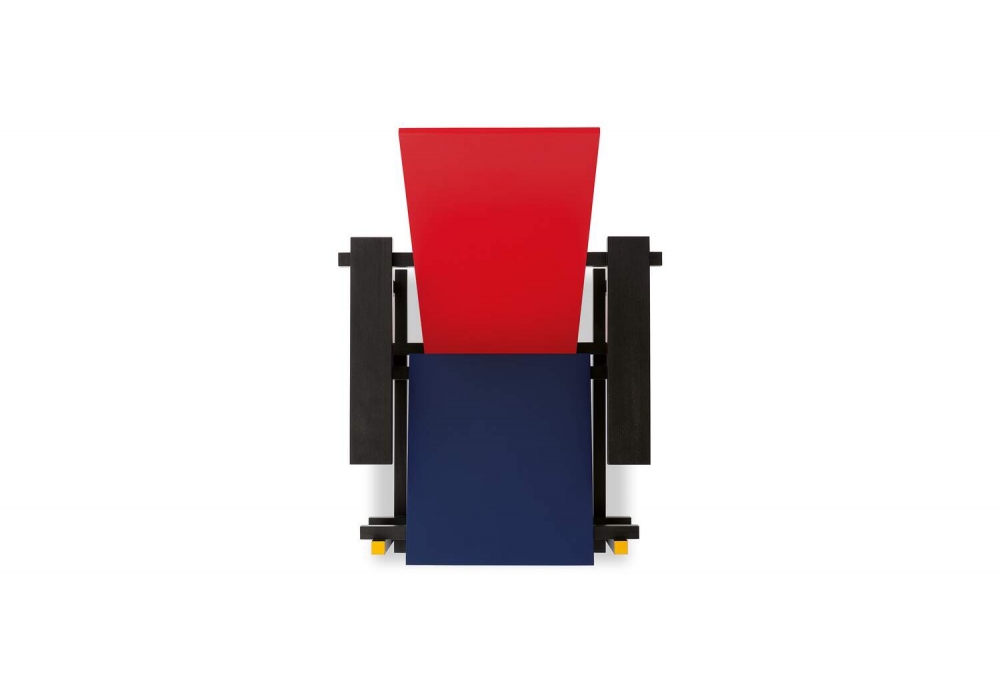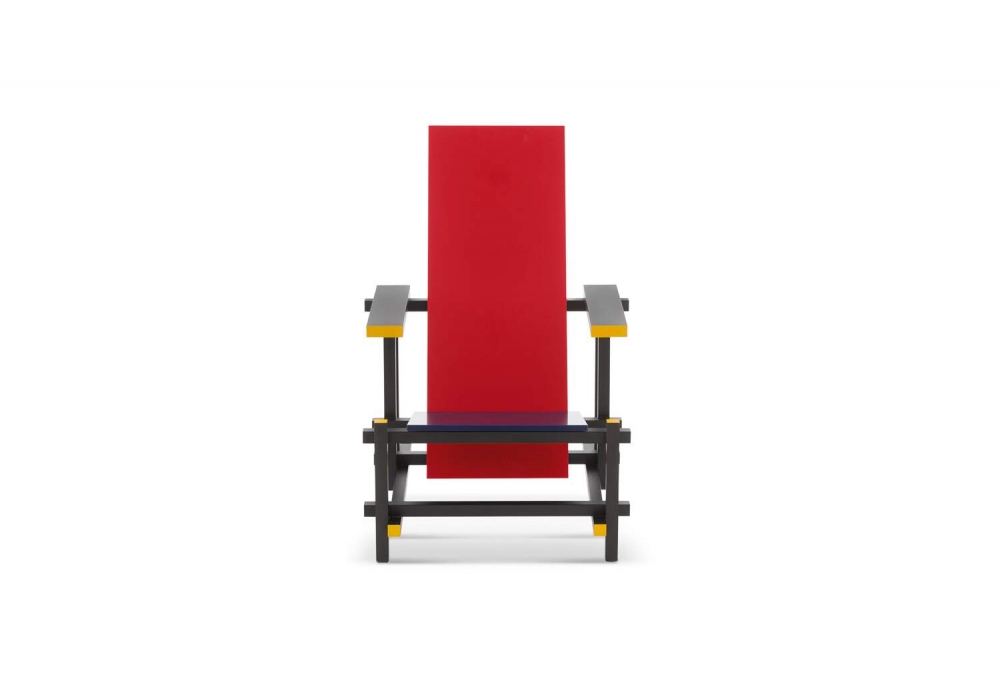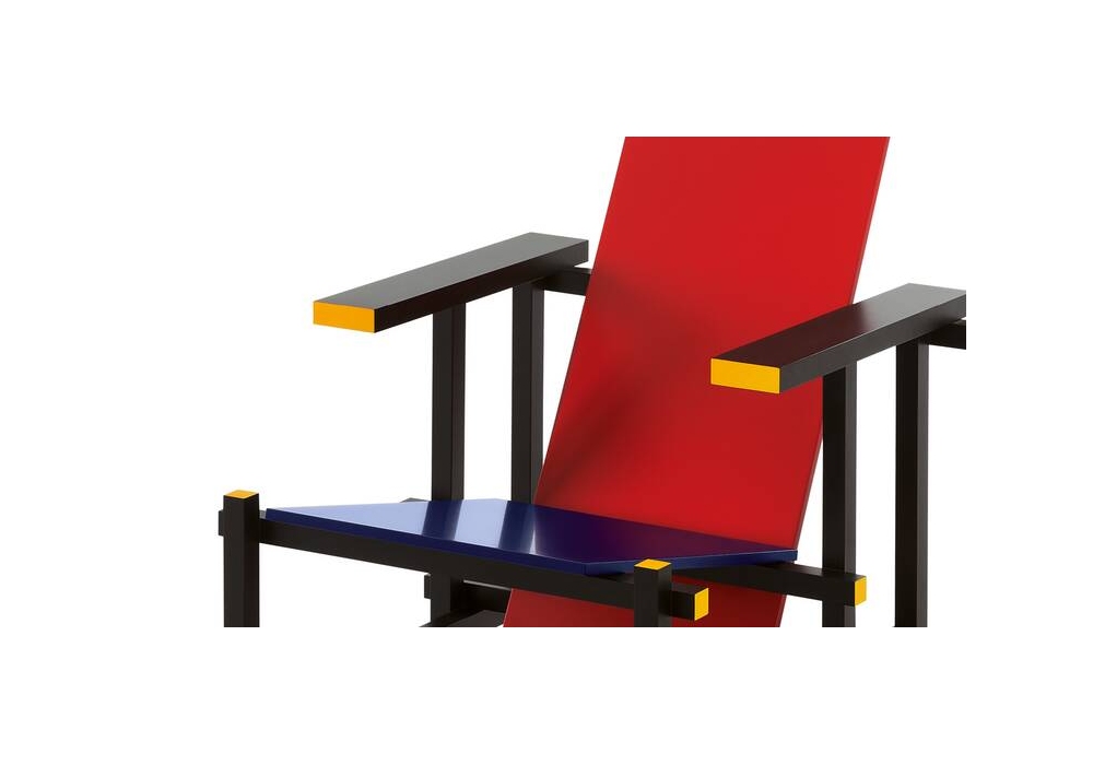 635 Red and Blue designed by Gerrit T. Rietveld for Cassina is a lacquered armchair made with a black-stained frame, blue seat and red backrest.