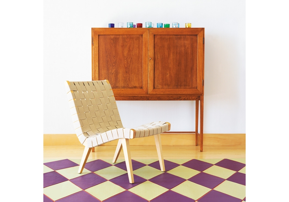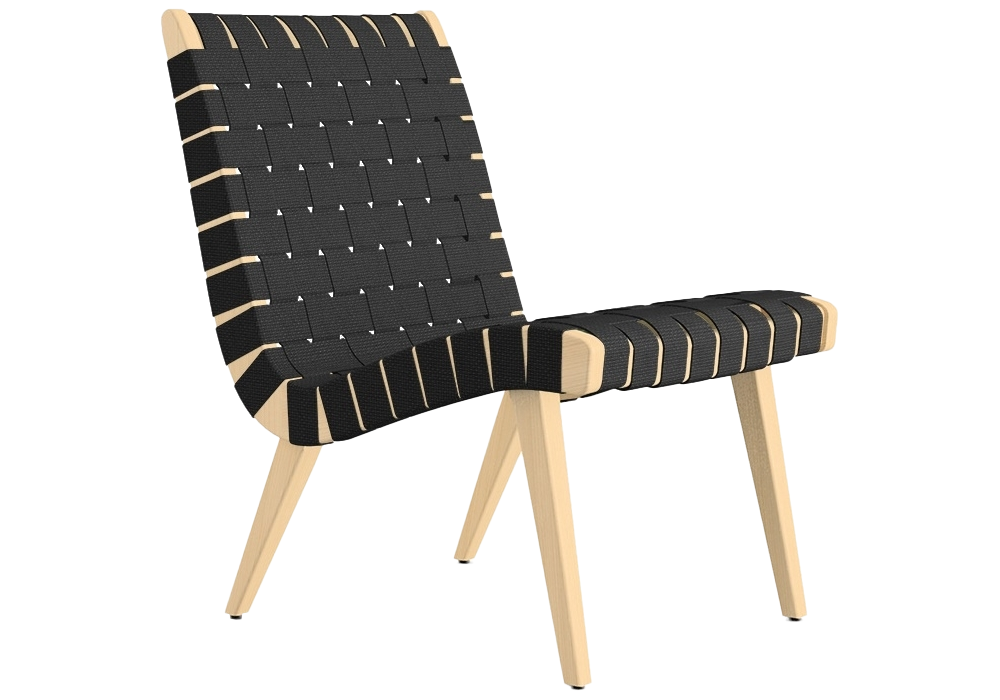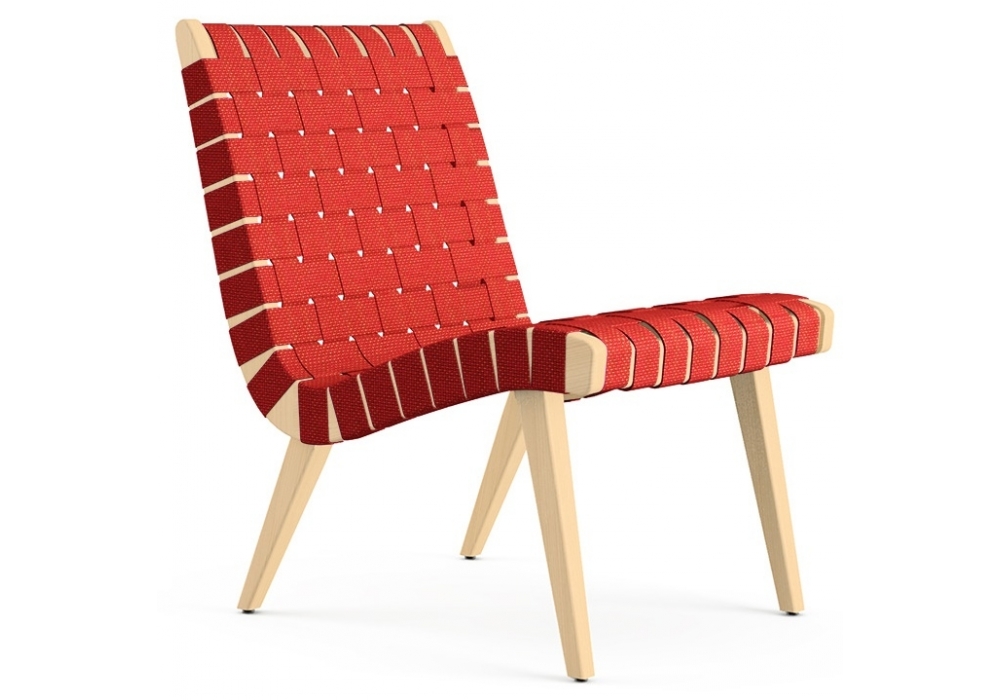 Risom designed by Jens Risom for Knoll is a lounge chair with a natural maple structure with transparent varnish. 100% natural cotton straps, available in three different colors.