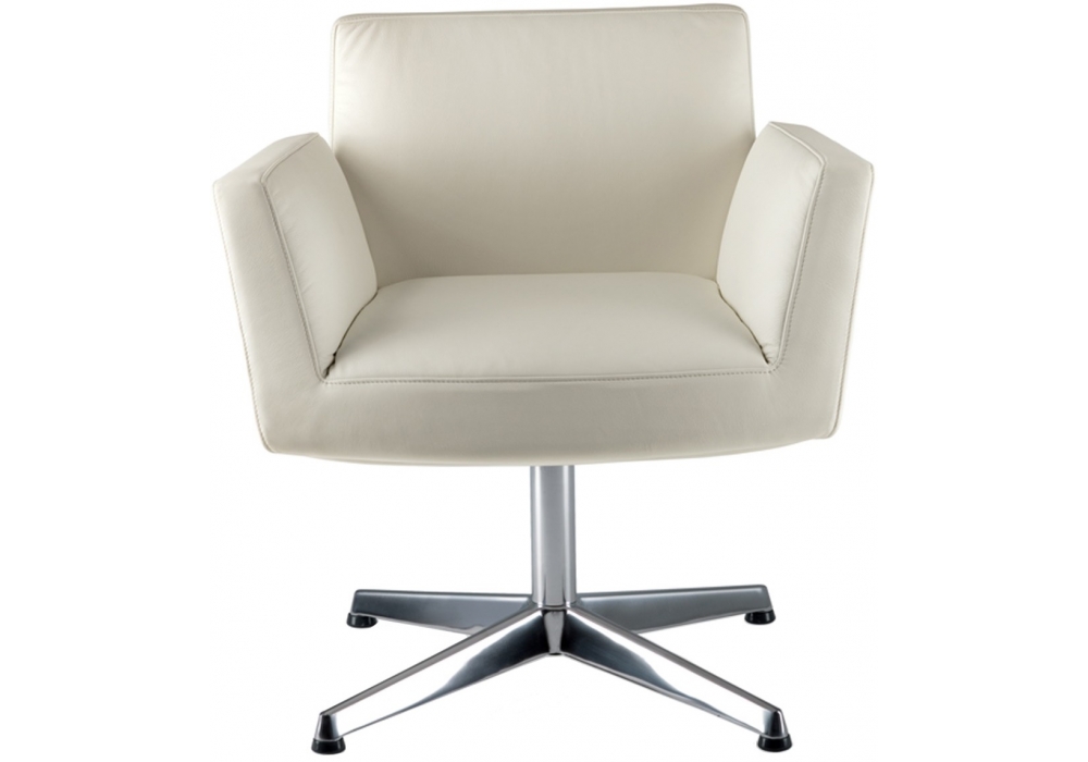 Chancellor Visitor designed by Lievore, Altherr & Molina for Poltrona Frau is a comfortable and welcoming office armchair. The base is available either in polished aluminium or a dark grey finish and has a 4-spoke base with swivel plastic glides. Upholstery is provided by soft Pelle Frau® leather from the Color System. Chancellor Visitor is fitted with an automatic return rotation mechanism provided by a resistant bearing, which allows the armchair to rotate and return to its original