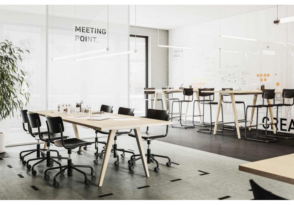 S 43 DR designed by Mart Stam for Thonet is a swivel armchair with chromed, white or black tubular steel frame. Black or white wheels. Seat and back in shaped beech plywood, available in different finishes. Height adjustable.