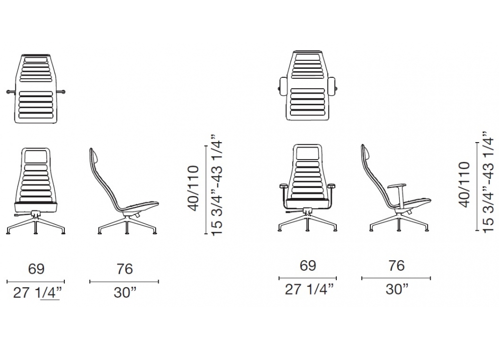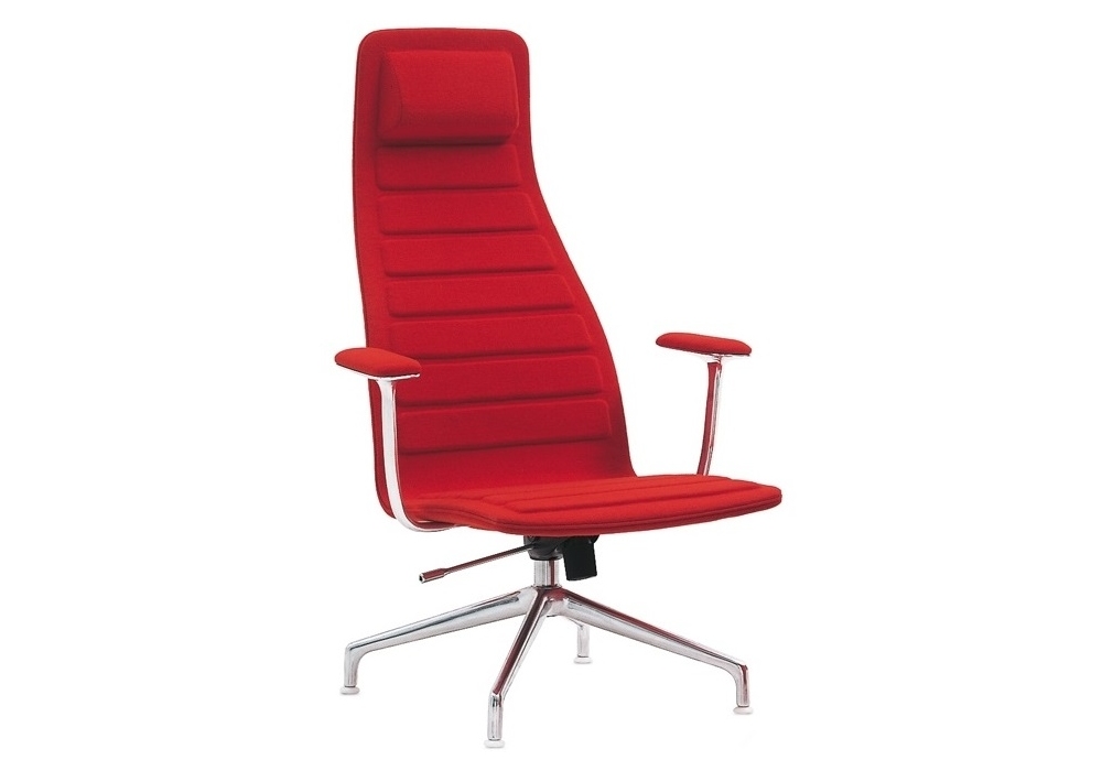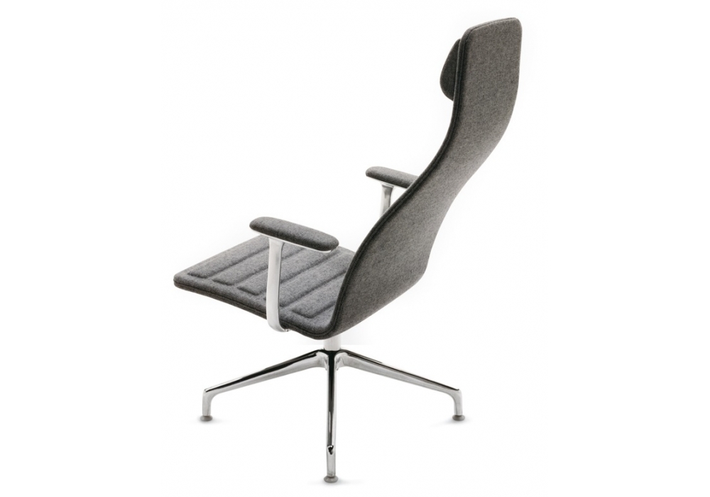 Lotus (Attesa) designed by Jasper Morrison for Cappellini is a swivel armchair with four-star base, with or without armrests. Fixed upholstery in leather or fabric.