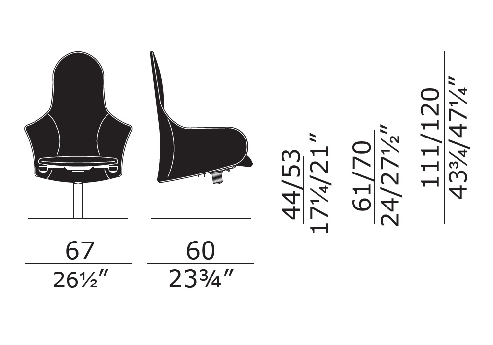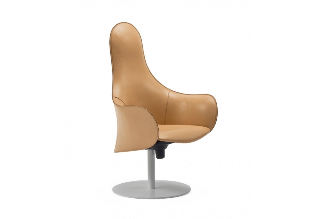 Hipod designed by Giulio Manzoni for Enrico Pellizzoni is a swivel armchair with external shell in rigid polyurethane and internal shell in flexible polyurethane, fully upholstered. Fixed base. Gas and tilting height adjustment mechanism. Available in different finishes.