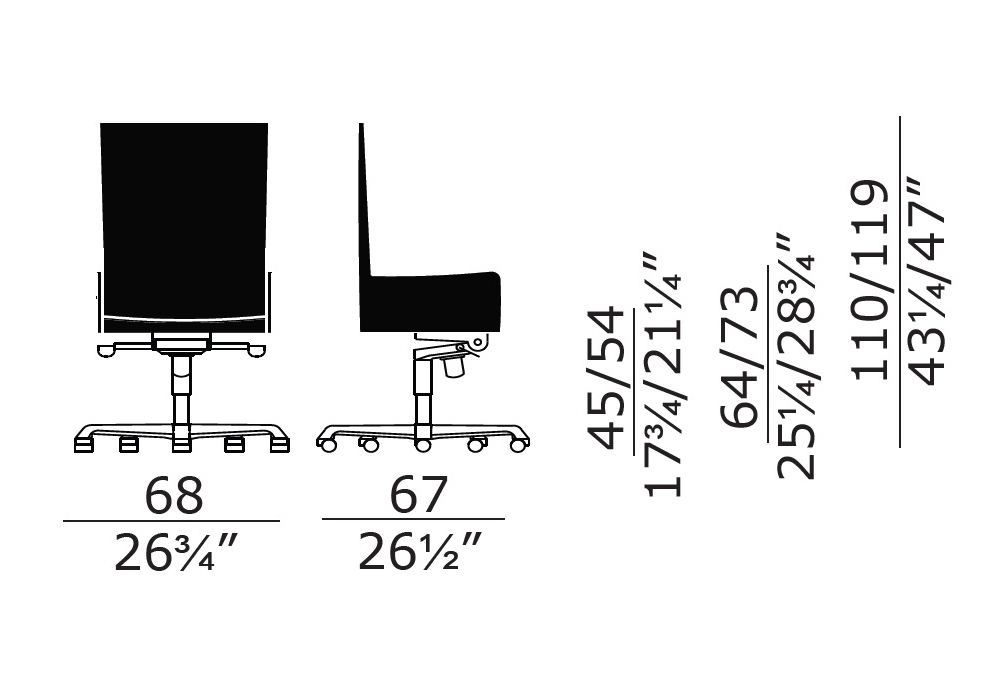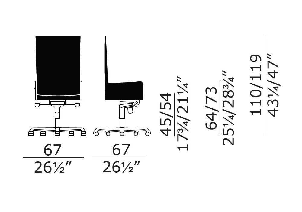| Armrest height | • 64/73 cm |