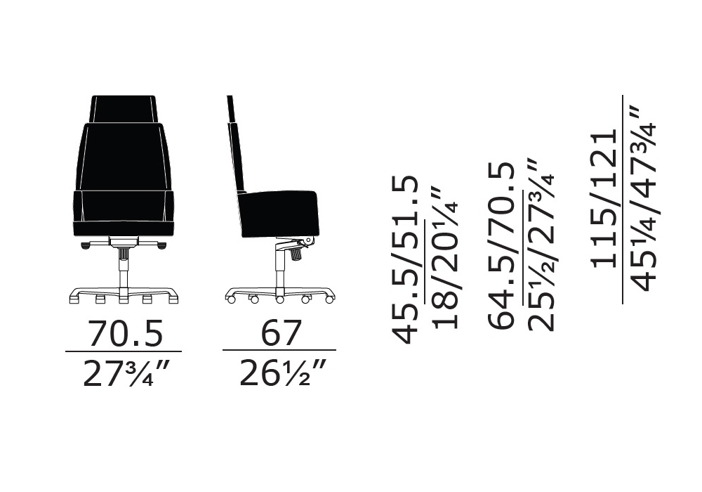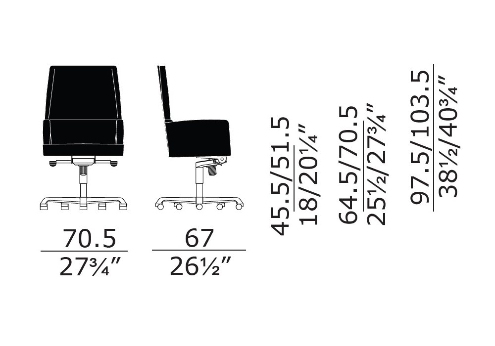 | Armrest height | • 64,5/70,5 cm |