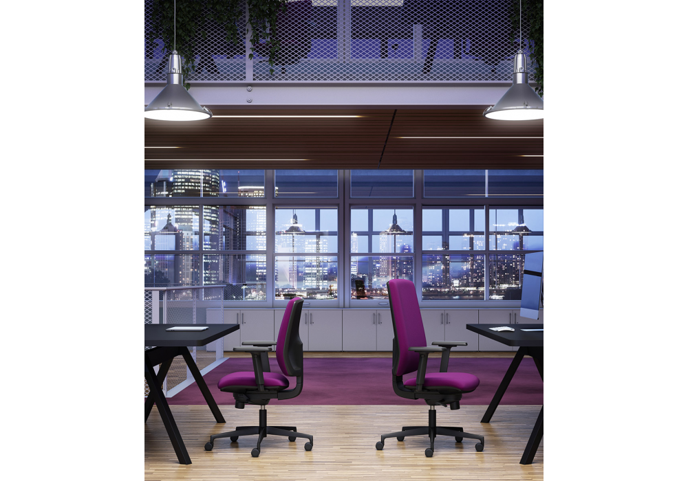 Mirai designed by R&D Sitlosophy for Sitlosophy is an armchair with seat in pressed plywood, backrest in reinforced polypropylene, foam padding co covered in fabric or eco-leather. The headrest is adjustable in height and inclination.