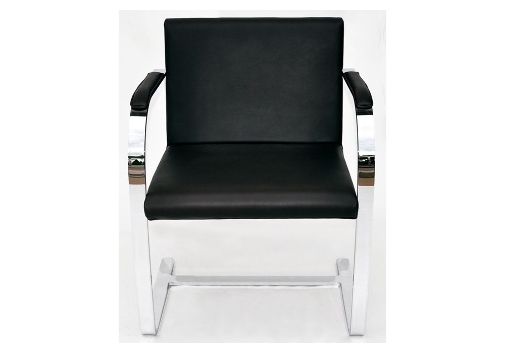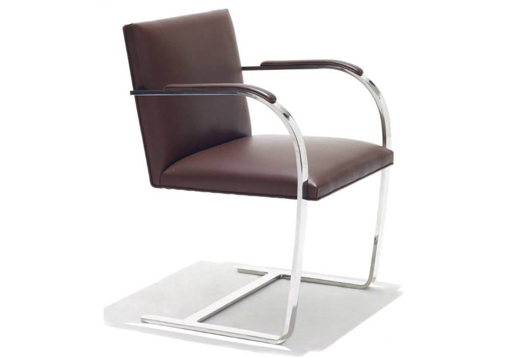 Brno designed by Ludwig Mies van der Rohe for Knoll is a flat-framed armchair made of polished chromed steel. Upholstery in fabric or leather. Available with or without upholstered armrests.