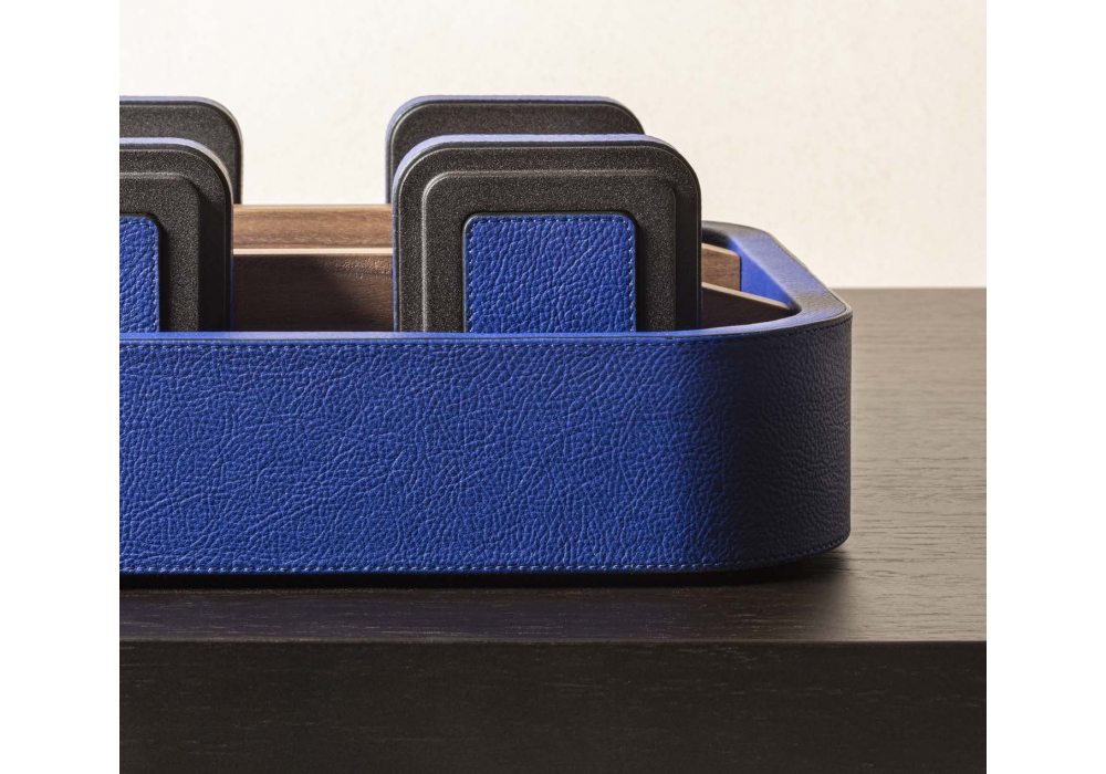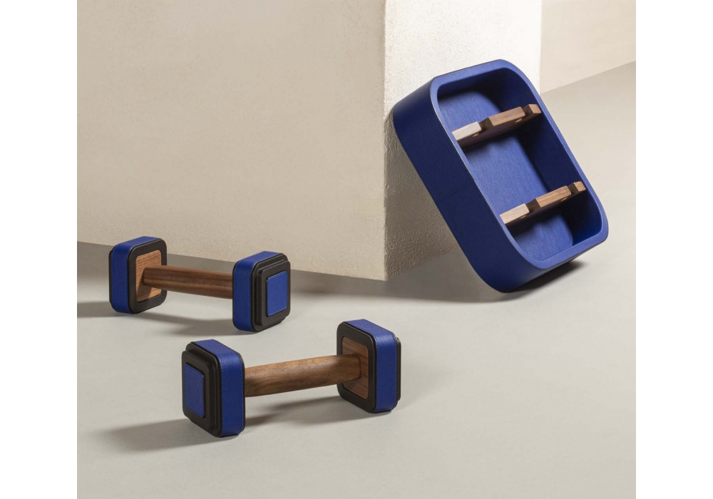 Set of weights designed by Giobagnara and Poltrona Frau. Steel weights partially covered in ColorSphere® leather with walnut wood handles. They are available in sets of two 2kg dumbbells and in sets of 6 dumbbells including two 2kg, two 4kg and two 6kg. Both sets are supplied with a dumbbells tray made with a wooden structure covered in Pelle Frau® ColorSphere®.