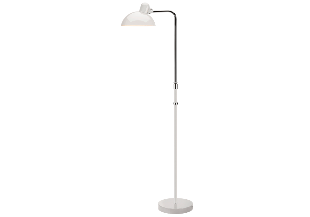 Kaiser Idell Luxus designed by Christian Dell for Fritz Hansen is a floor lamp with adjustable height with articulated diffuser, made of steel. Available in different finishes.