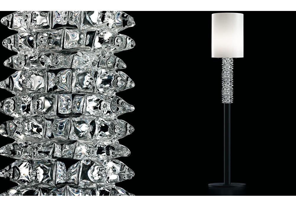 My Marylin designed by Giorgia Brusemini for Barovier & Toso is a floor lamp with circular base and tubular stem in black or myrrh painted metal embellished with crystal spools. The diffuser is cylindrical in white Venetian glass and adopts a dimmable LED or halogen light source. My Marylin is available in different sizes and finishes.