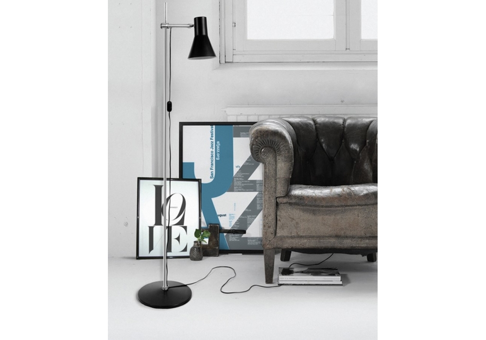 Coleman designed by DelightFULL is a floor lamp with manageable head with 1 light painted in matt black and matt white interior. It has a simple and elegant design, the cable is in black fabric and a flexible lampshade.