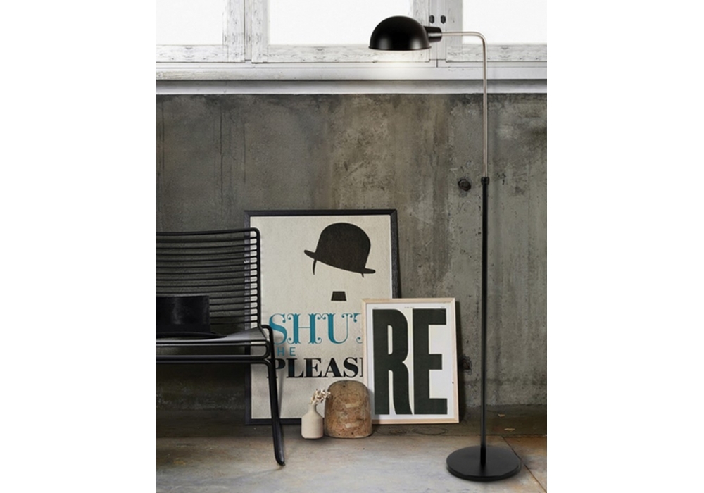 Herbie designed by DelightFULL is a floor lamp with a handcrafted brass structure, its matt black exterior is complemented by a matt white internal lampshade. The floor lamp offers the possibility to adjust its direction and height.