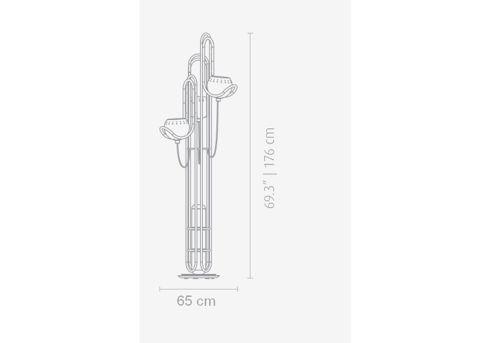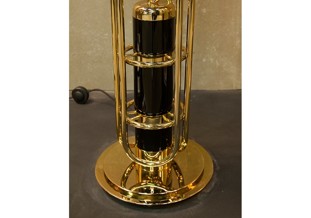 Neil designed by DelightFULL is a floor lamp with a brass base that extends into three lampshades with a glossy black finish. The three arms with flexible lights provide a good range of peripheral light.