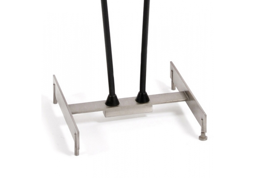 Pastorius designed by DelightFULL is a floor lamp with a brass structure and acrylic and aluminum shades with matt black and glossy white exterior.