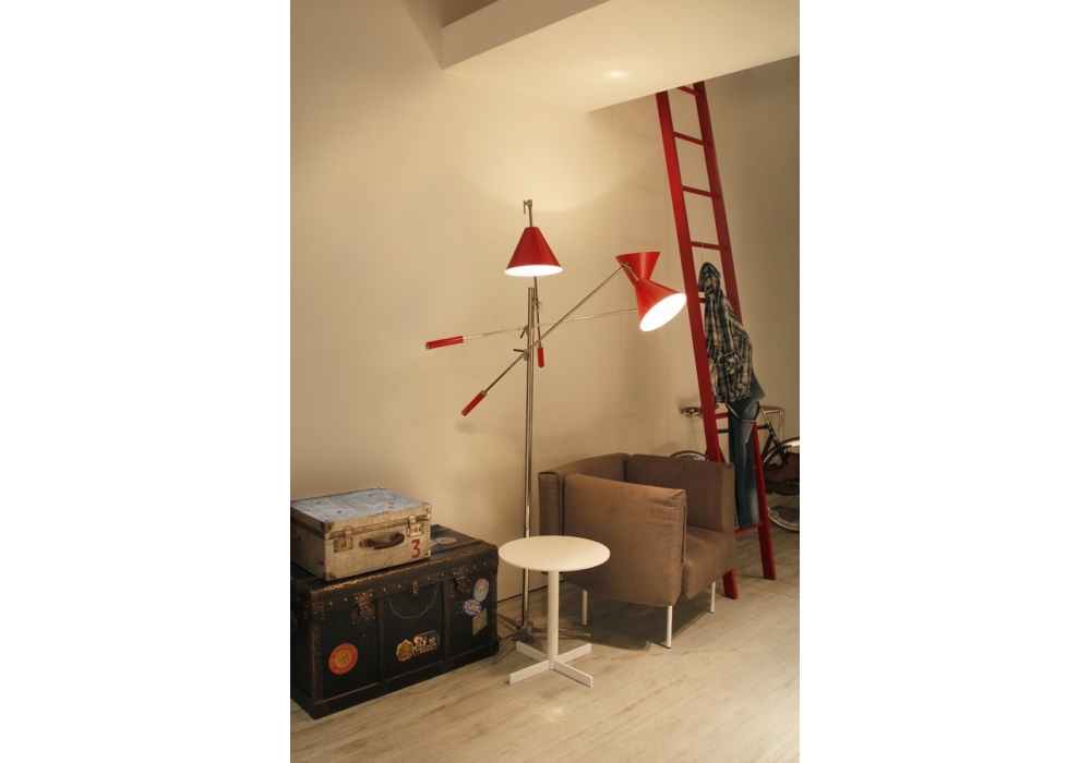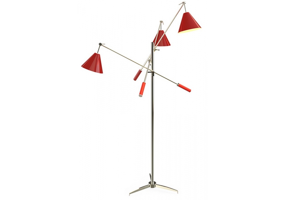 Sinatra designed by DelightFULL is a floor lamp features three handmade articulated brass arms that are flexible in a variety of different positions to allow you to position the lights exactly as you need. It has a height of 1.80 cm and rests on a brass base with a counterweight made of steel.