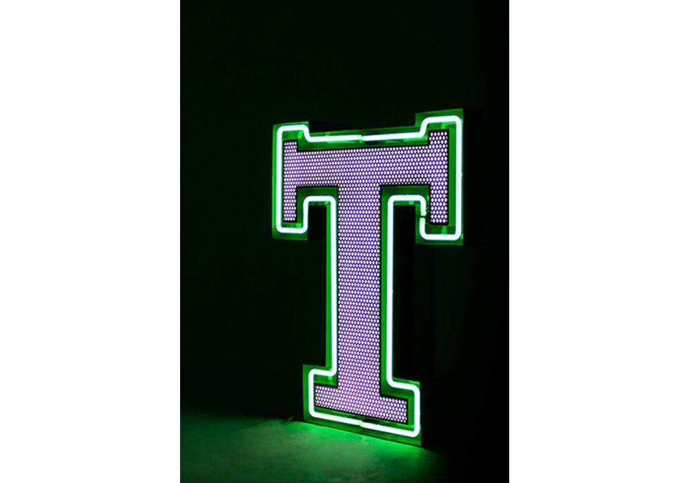 Graphic Collection - Letter T is a lamp designed by DelightFULL. This lamp recovers the retro style with a mix of urban style. The mixture of neon green with the interior lighting LED turns this letter almost hypnotic. It can be placed also outside. You can either put it on the ground or on the wall.