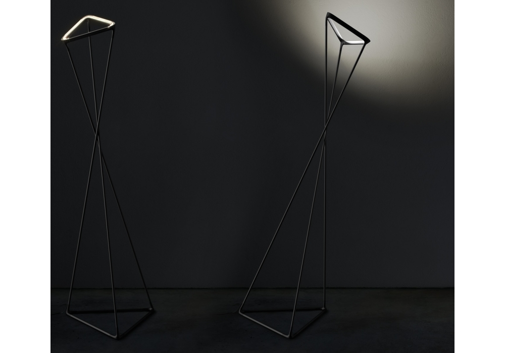 Tango designed by Francisco Gomez Paz for Luceplan is a floor lamp with aluminum structure, elastomer joints and triangular steel base. It is possible to direct the light beam thanks to a mechanical torsion movement that starts from the median part of the stems up to the reflector. The light is controlled via sensorial dimmer or footOn / Off. Available in the 2700K ° or 3000K ° version.