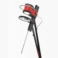 Ilios designed by Franz Ringelhan for Ingo Maurer is a floor lamp in metal and glass, with fluorescent red insulating element. Available in different finishes.