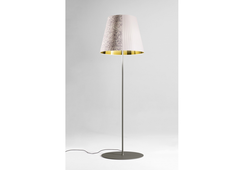 Melting Pot designed by Sandro Santantonio for Axo Light is a beautiful floor lamp with lampshades available in 2 different finishes: with light or dark decorative patterns. The light finish features a light patterns outside, whereas the dark version presents a dark patterns outside. The lampshade's inside can also be chosen with gold-plated or silver-plated finish. Also available in 2 different sizes. Protection Index IP 20.