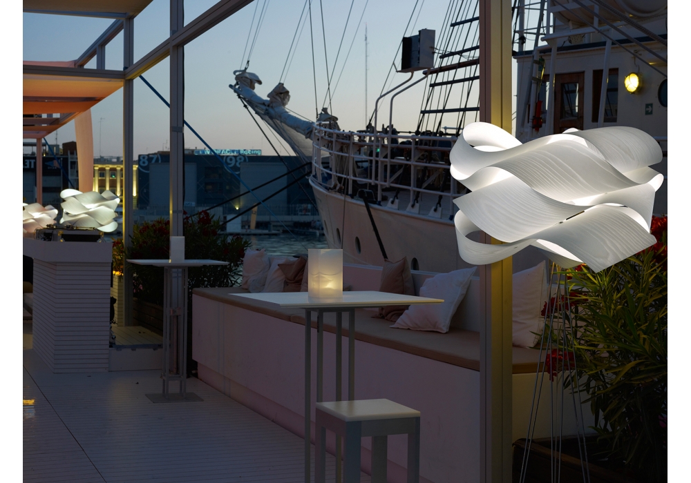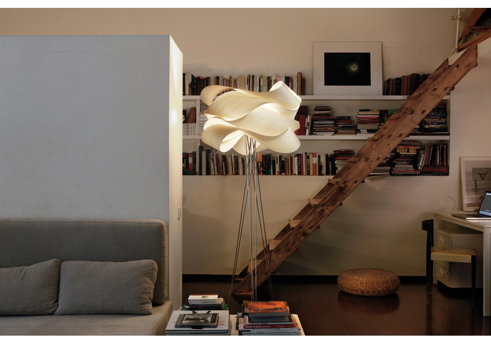 Link designed by Ray Power for LZF is a floor lamp made of wood with chrome base. The Link lamp makes beautiful use of wood veneer Möbius strips piled on top of one another and through the winding curves of the shield reaches a special visual effect. Available in different finishes.