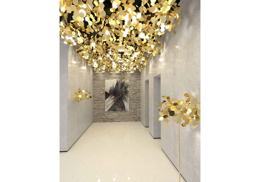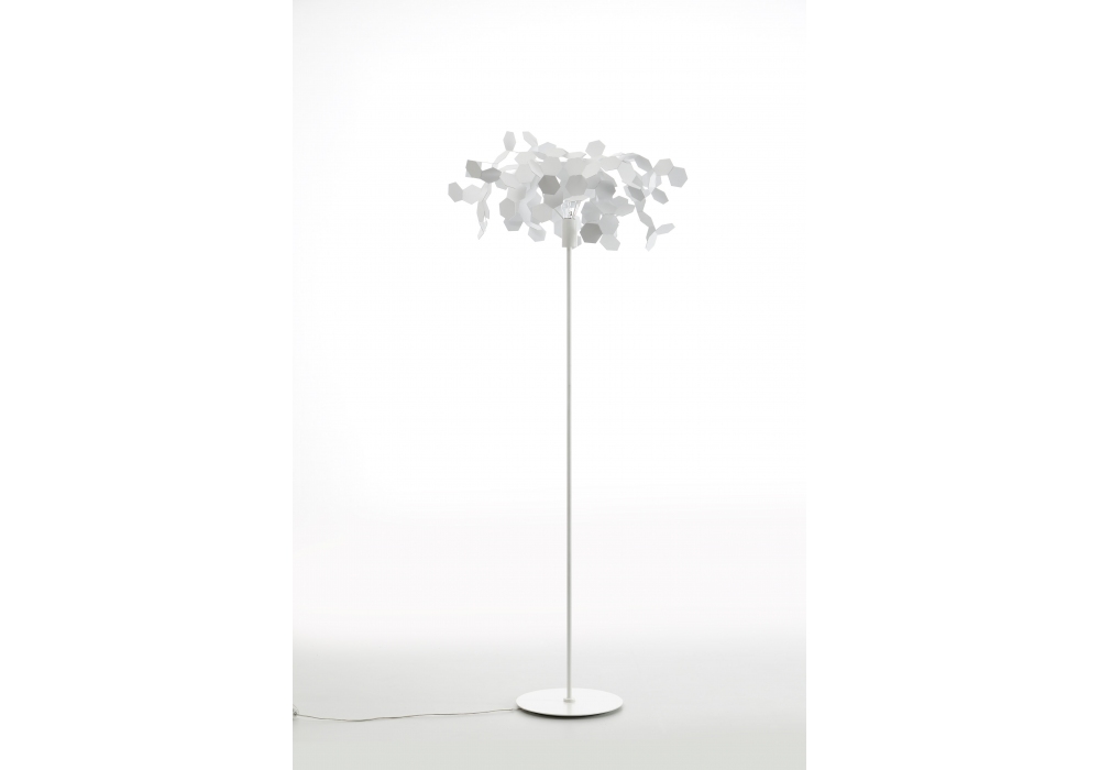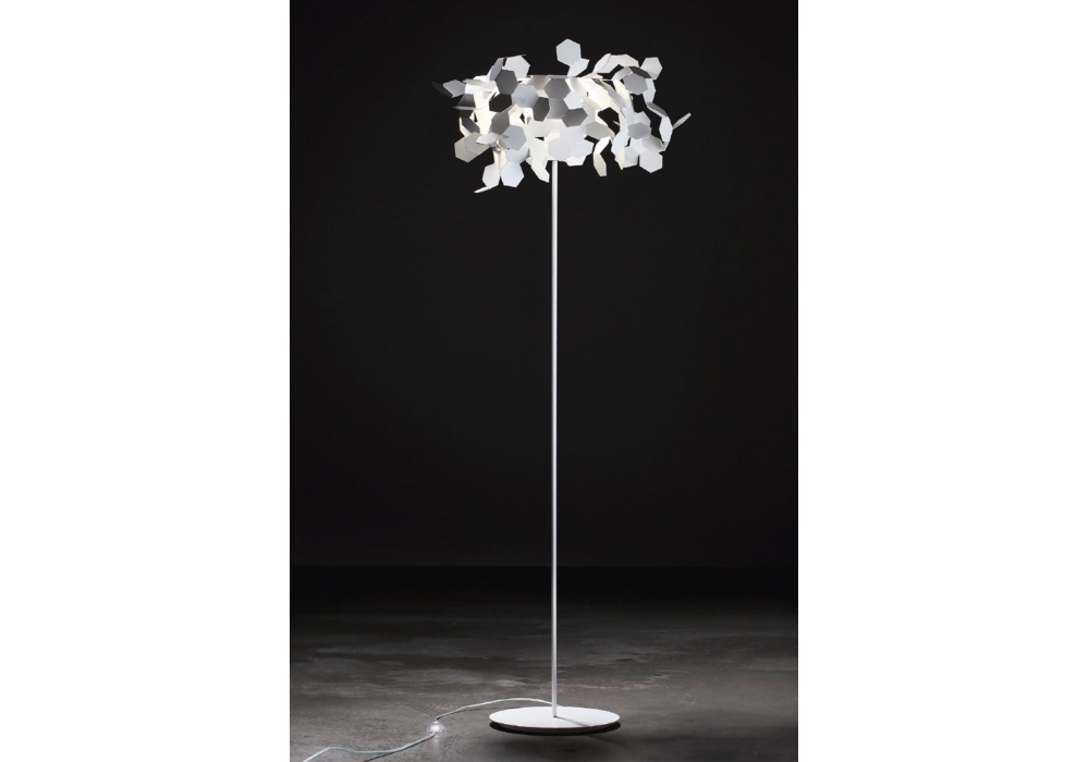 Andromeda designed by Paolo Ulian for Zava is a floor lamp made of aluminum that can take on infinite configurations depending on how the hexagonal elements / diffusers are arranged. Available in different finishes.