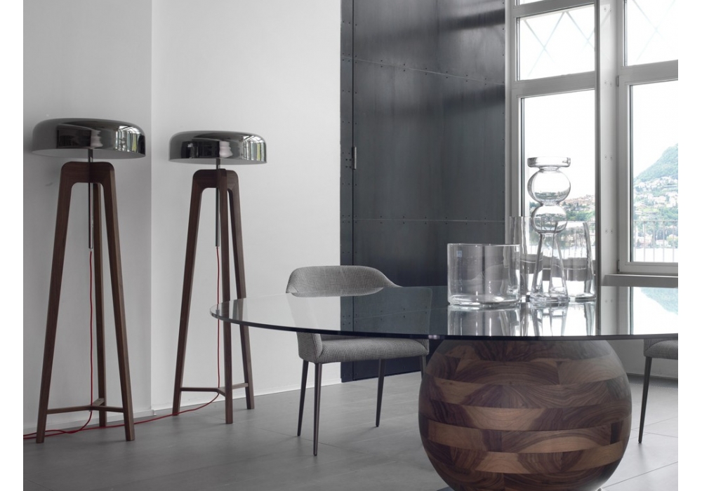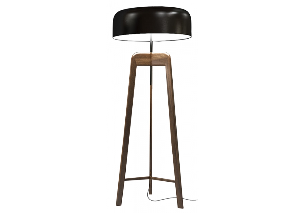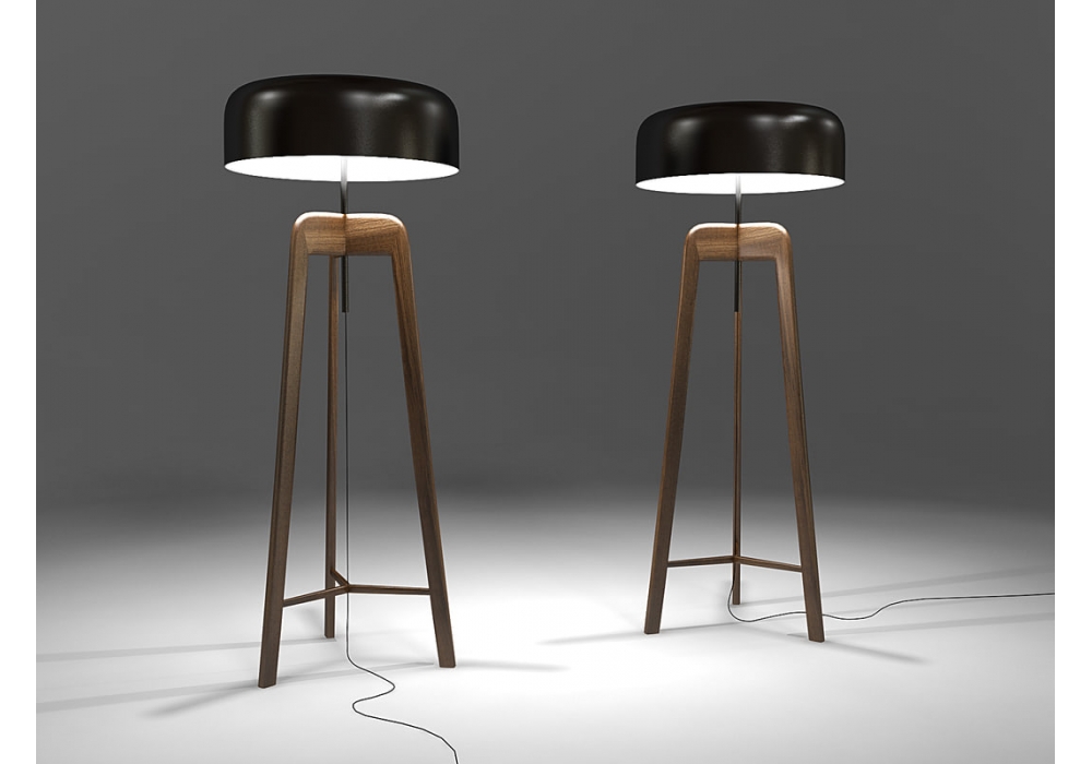 Pileo designed by Sovrappensiero for Porada is a floor lamp with structure in solid canaletta walnut or matt lacquered closed pore and tin-plated lampshade in two different finishes. Suitable for fluorescent and LED bulbs.