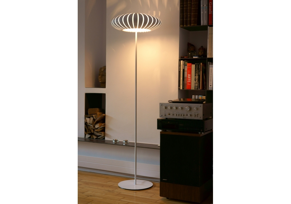 Maranga P130 designed by Christophe Mathieu for Marset is a floor lamp made of polycarbonate and chromed metal.