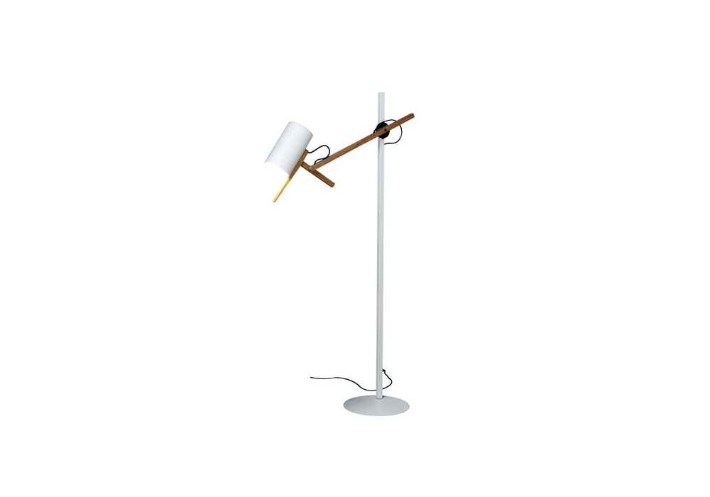 Scantling P73 designed by Mathias Hahn for Marset is a floor lamp with structure in iron, diffuser in aluminum and arm in oak. Base, stem and diffuser available in black or white finishes.
